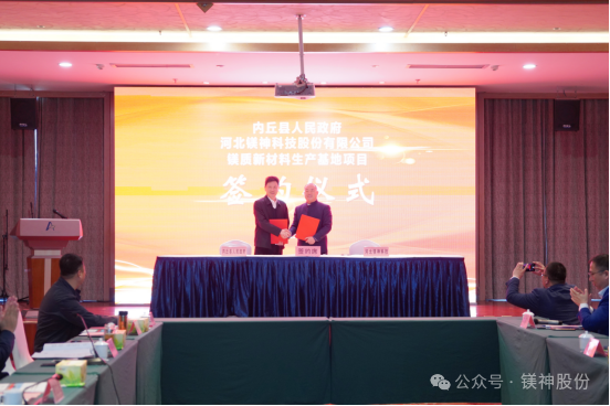 2025年3月28日,河北鎂神科技股份有限公司與內(nèi)丘縣人民政府在阿爾卡迪亞酒店悅盛廳隆重舉行鎂質(zhì)新材料生產(chǎn)基地項目簽約儀式。該項目總投資20.25億元,選址邢臺市內(nèi)丘縣工業(yè)園區(qū),致力打造世界級高端鎂質(zhì)新材料生產(chǎn)基地,為區(qū)域經(jīng)濟高質(zhì)量發(fā)展注入新動能。