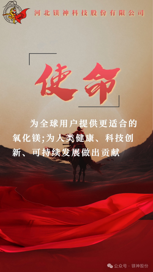 我們的使命是:為全球用戶提供更適合的氧化鎂,為人類健康、科技創新、可持續發展做出貢獻。