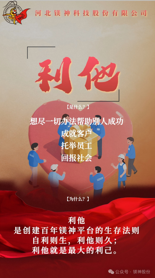 利他,是創建百年鎂神平臺的生存法則。自利則生,利他則久;利他就是最大的利己。