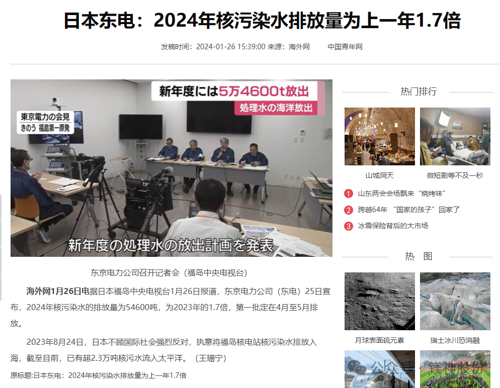 圖為已有超2.3萬噸核污水流入太平洋相關報道